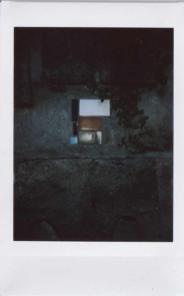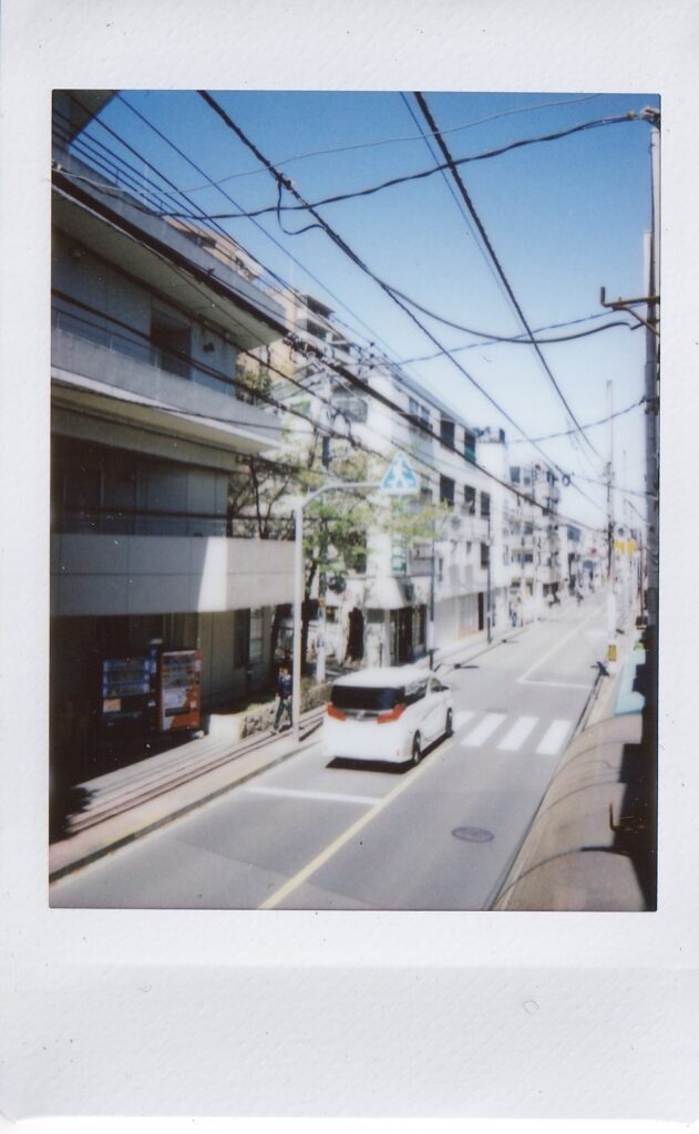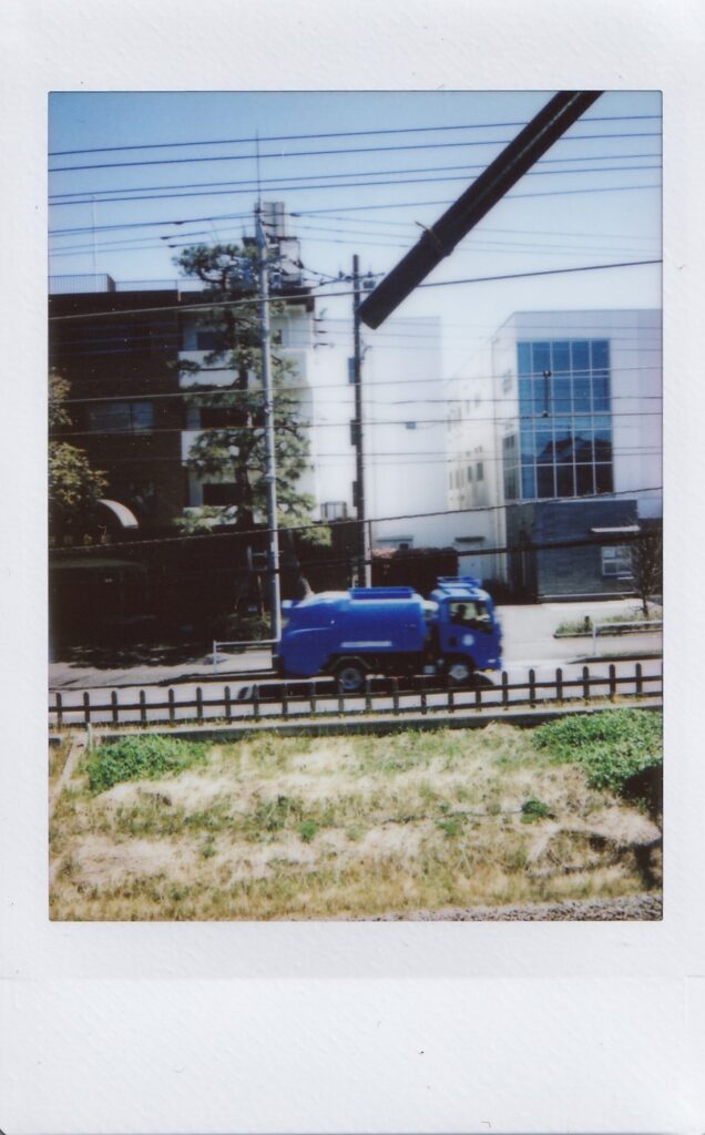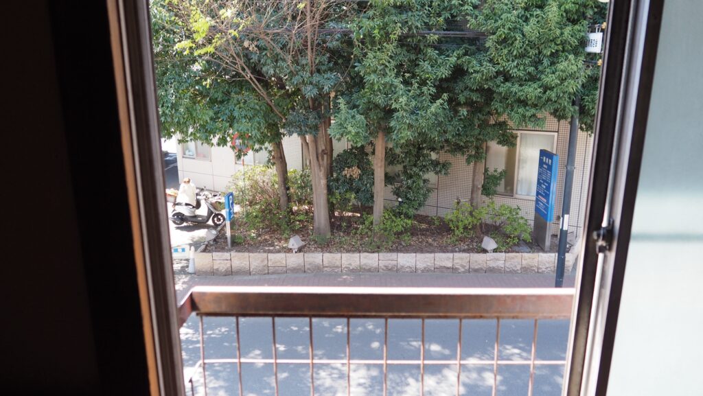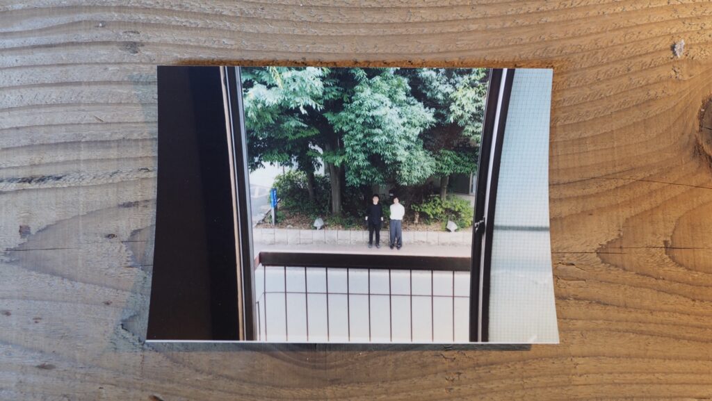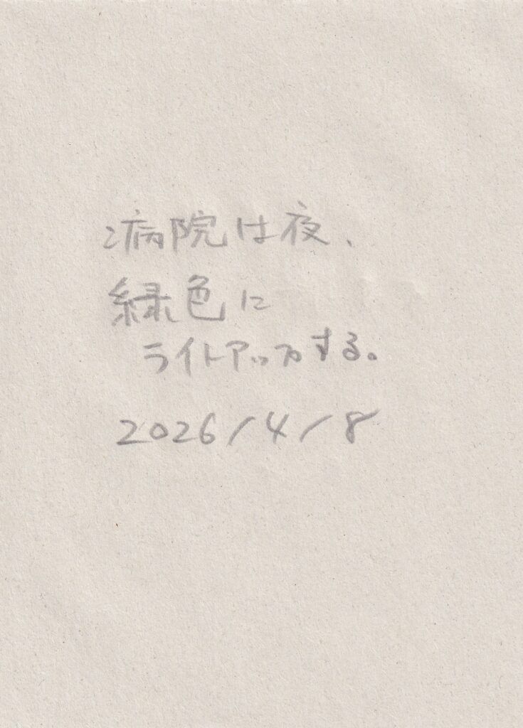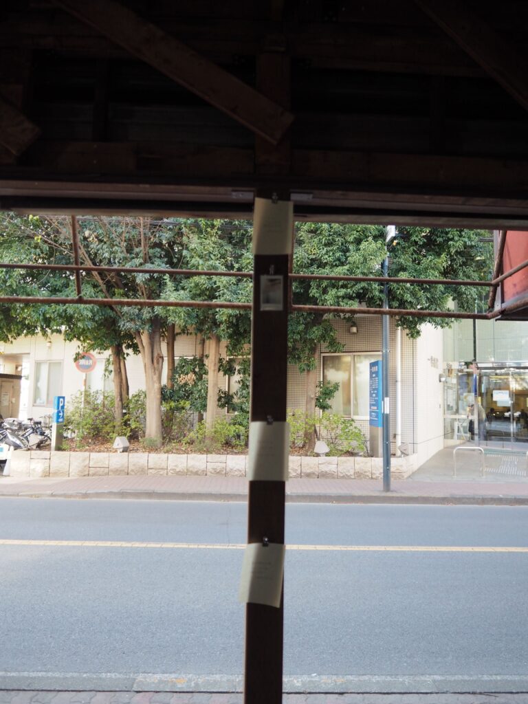 前回来た時から他に変わったところがないか探す。他はあんまり変わっていないような気もしたが、階段を上がった先に金の折り鶴が隠されていたことに気づく。窓辺には桜の花びらが落ちていた。向かいの病院の前に桜の木があり、おそらくその木のものだろう。前回、雨の中で、夕暮れで、はっきり見えなかった桜が葉桜になっていた。何枚か写真を撮り、その後、三浦さんと前回の振り返りと、自分の考えと、これからの話をした。それから何枚かまた写真を撮る。