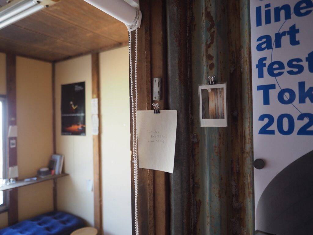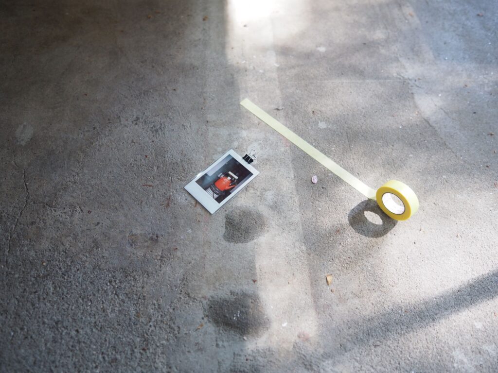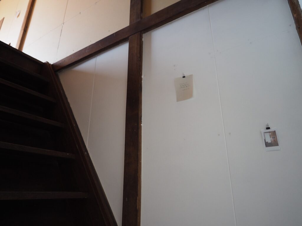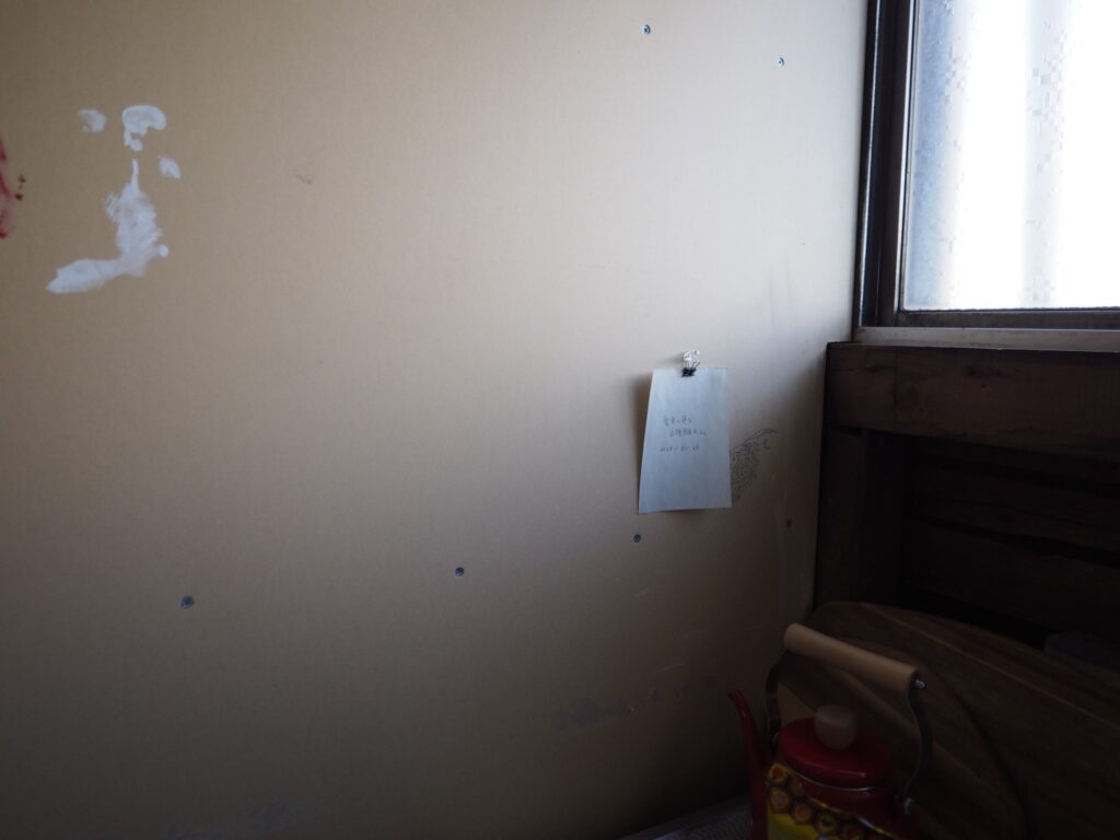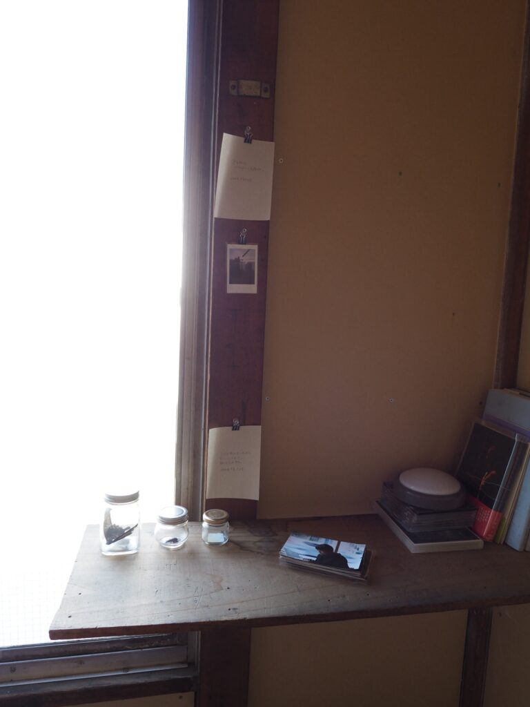 三浦さんが帰るまでは前回書いたメモと写真を壁にかけることをした。あわせて、三浦さんが撮ったiruでの写真を見ながら、同じ位置で写真を撮ることをしてみた。案外集中して作業していると、電気代の支払い伝票が届いたり、地域の人らしき人がここは何の場所なのかと尋ねてきたり、挨拶されたりと、それに受け答えをすることもあった。来る前に昼食をと、インスタント麺を買っていたのだが、鍋と皿がなく断念。病院の前の自動販売機で買った一番安い缶コーヒーと、ついでに買っていたスナック菓子を食べる。