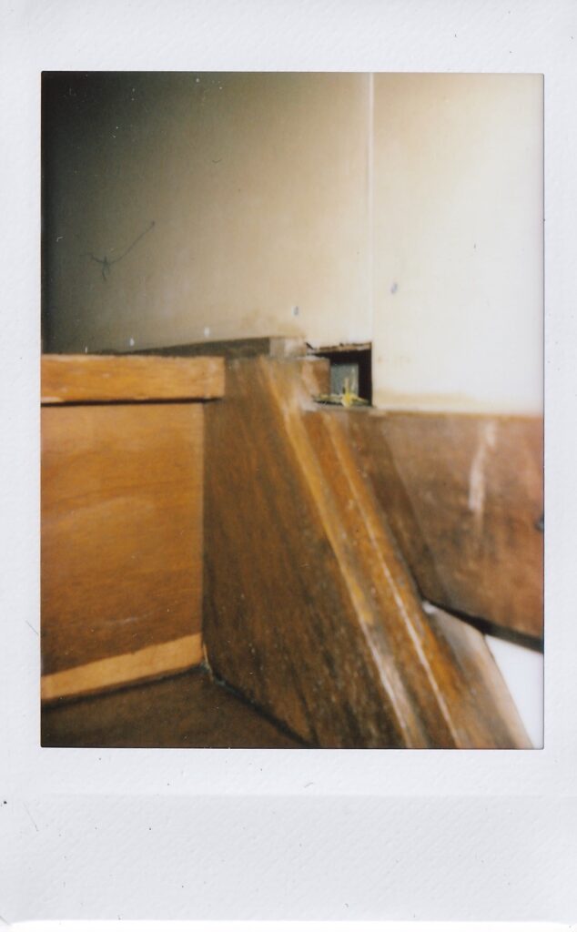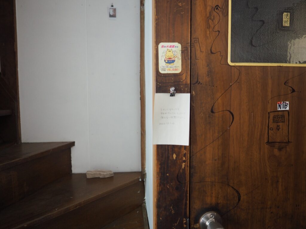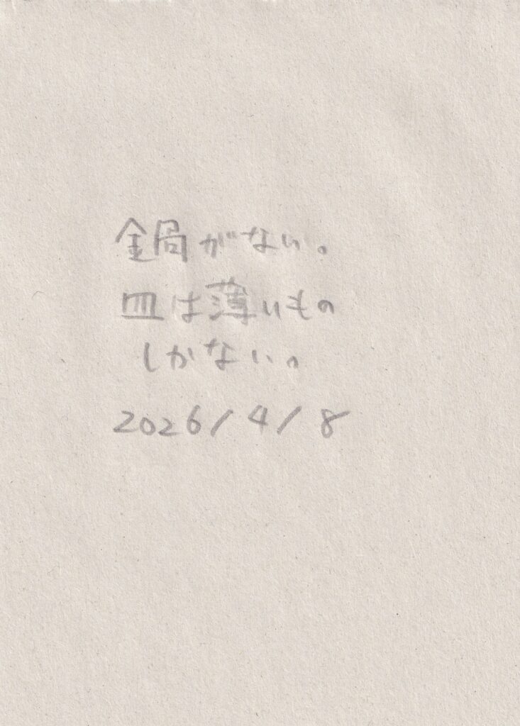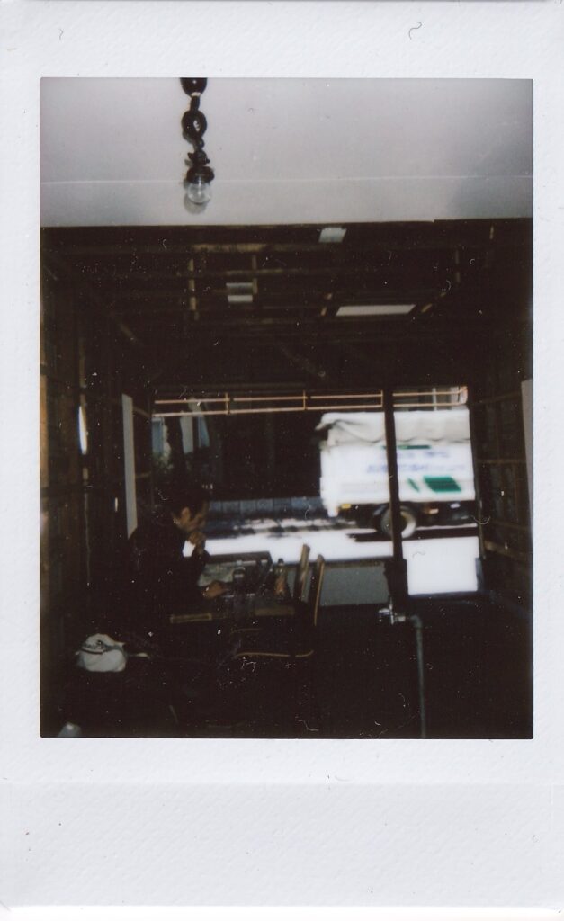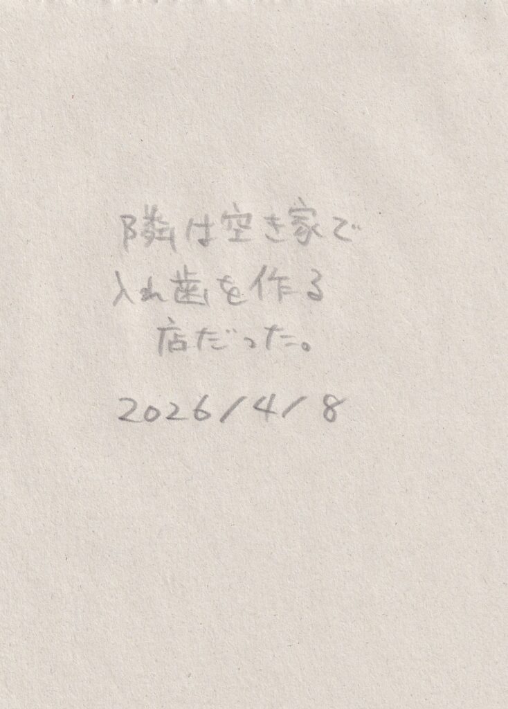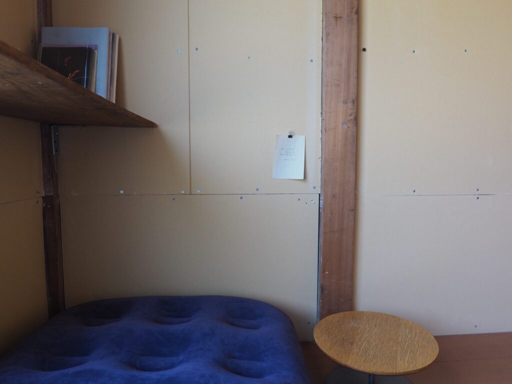 三浦さんが帰るまでは前回書いたメモと写真を壁にかけることをした。あわせて、三浦さんが撮ったiruでの写真を見ながら、同じ位置で写真を撮ることをしてみた。案外集中して作業していると、電気代の支払い伝票が届いたり、地域の人らしき人がここは何の場所なのかと尋ねてきたり、挨拶されたりと、それに受け答えをすることもあった。来る前に昼食をと、インスタント麺を買っていたのだが、鍋と皿がなく断念。病院の前の自動販売機で買った一番安い缶コーヒーと、ついでに買っていたスナック菓子を食べる。