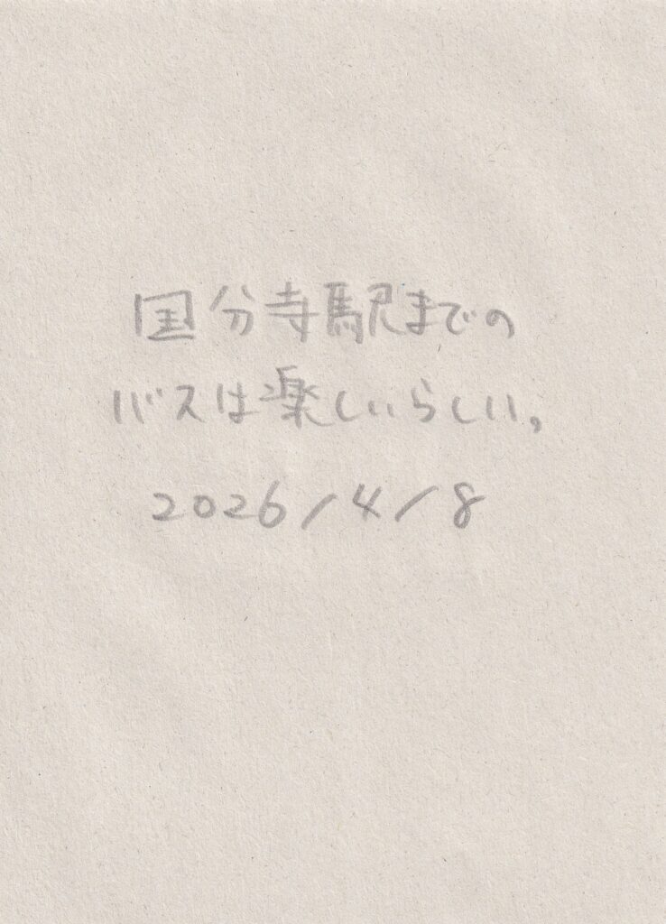帰り道、国分寺に住んでいたような気のする友人に連絡をすると、どうやら本当に近くに住んでいた。彼は車で移動していることが多く、あまり飲むことがなかった。今日はたまたま休みで近くにて、国分寺までは徒歩で、すごく久しぶりに飲んだ。店を出て、2軒目には行かず、何となく、ドンキホーテで買ったレモンサワーを飲み歩き、隣駅の西国分寺駅から帰った。